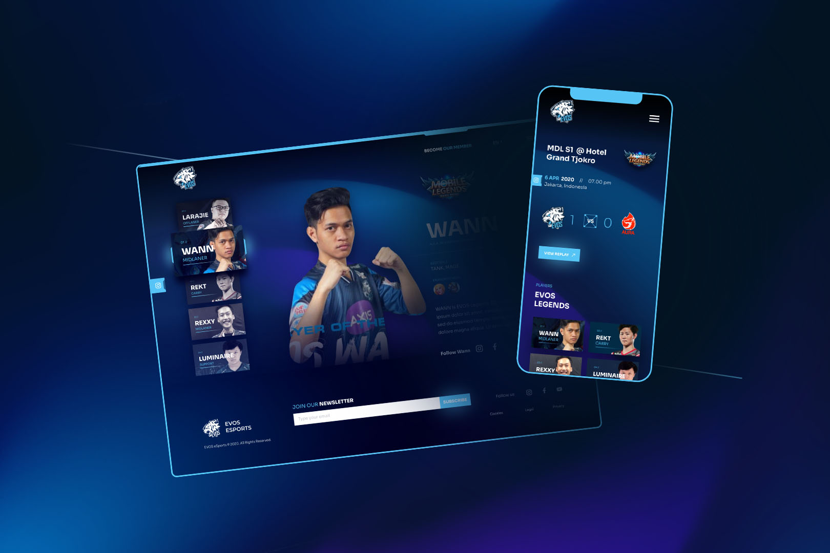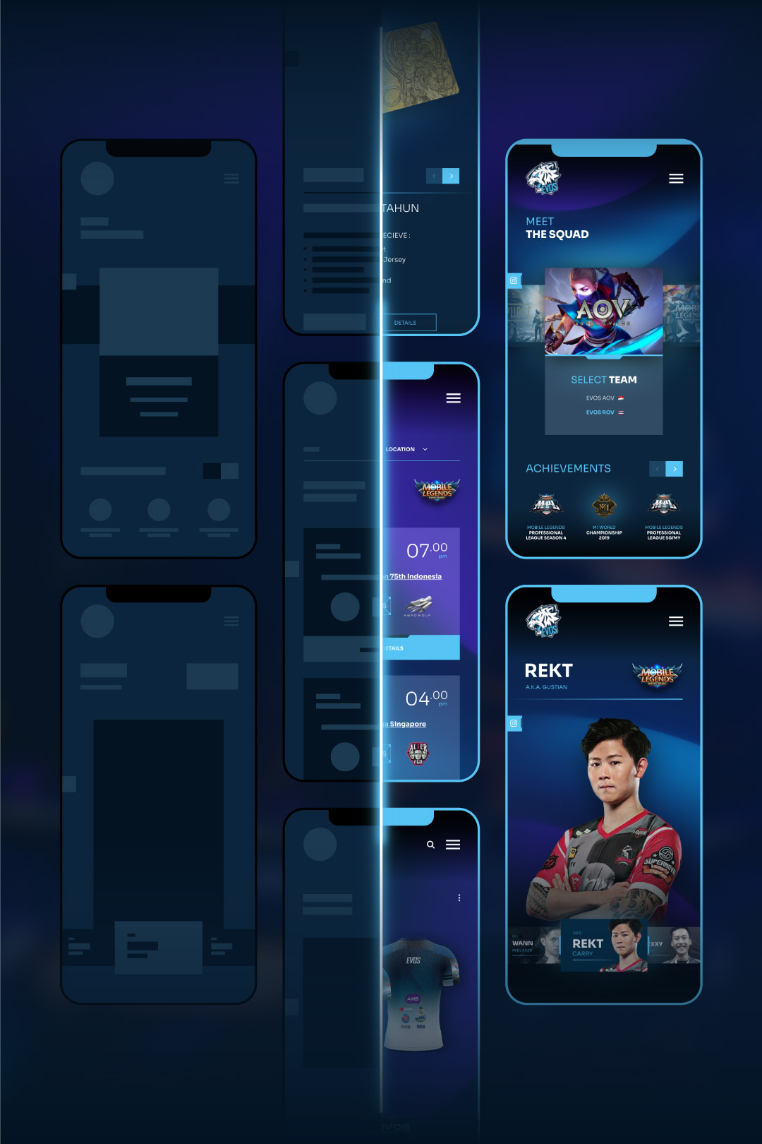 To initiate EVOS as the Carry of the SEA eSports team, we did a major makeover for their website. We visualized it as if being transferred inside a game, inciting our own fantasies. From selecting your character and matches to collecting trophies and other trinkets, the website reveals the complex yet thrilling side of the virtual world in great detail. By taking an approach of futuristic and sci-fi aesthetic, we want to distinguish EVOS from the rest and cemented the brand as a household name in the world of eSports.