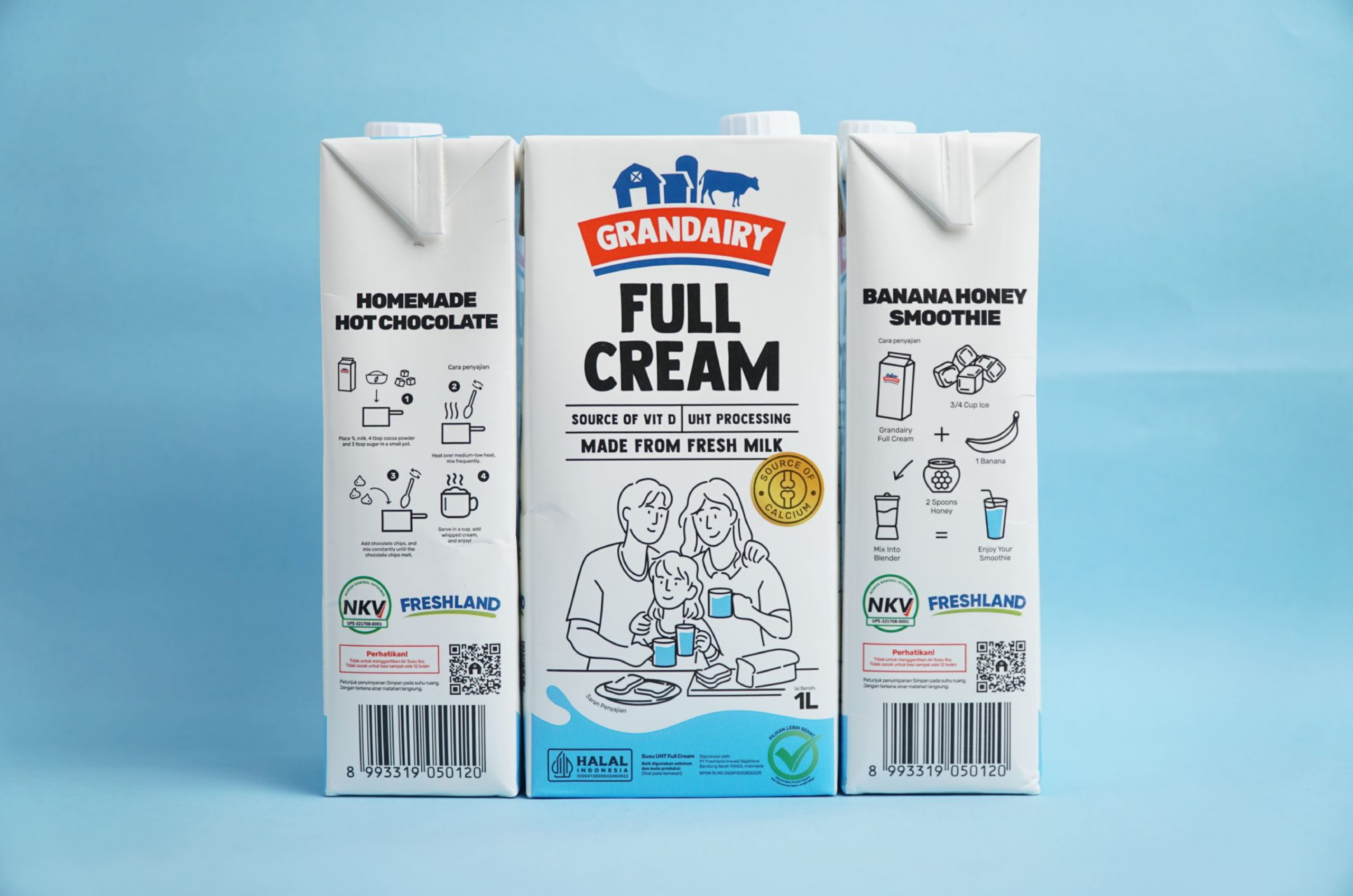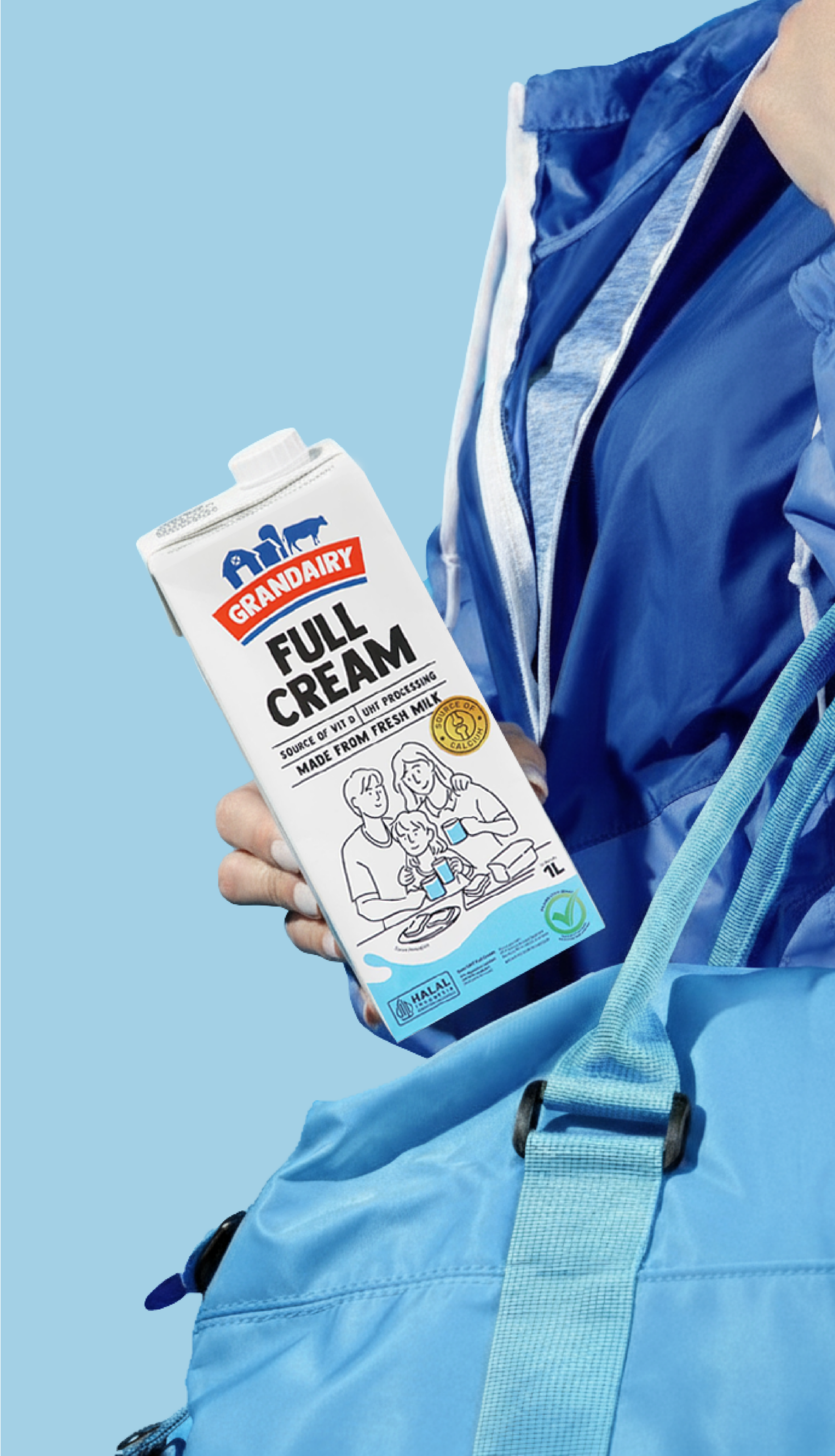 As Grandairy’s reputation grew within the professional community, the brand recognized an opportunity for expansion. They envisioned a future where their productss can be appealing to and enjoyed by all Indonesian families. This vision led to the creation of a full cream milk variant designed for everyday family use. EGGHEAD was brough on board to guide this transition and help Grandairy evolve from a niche professional brand to a beloved family staple. We were tasked with redefining Grandairy’s visual identity through its product packaging development to reflect this transition.